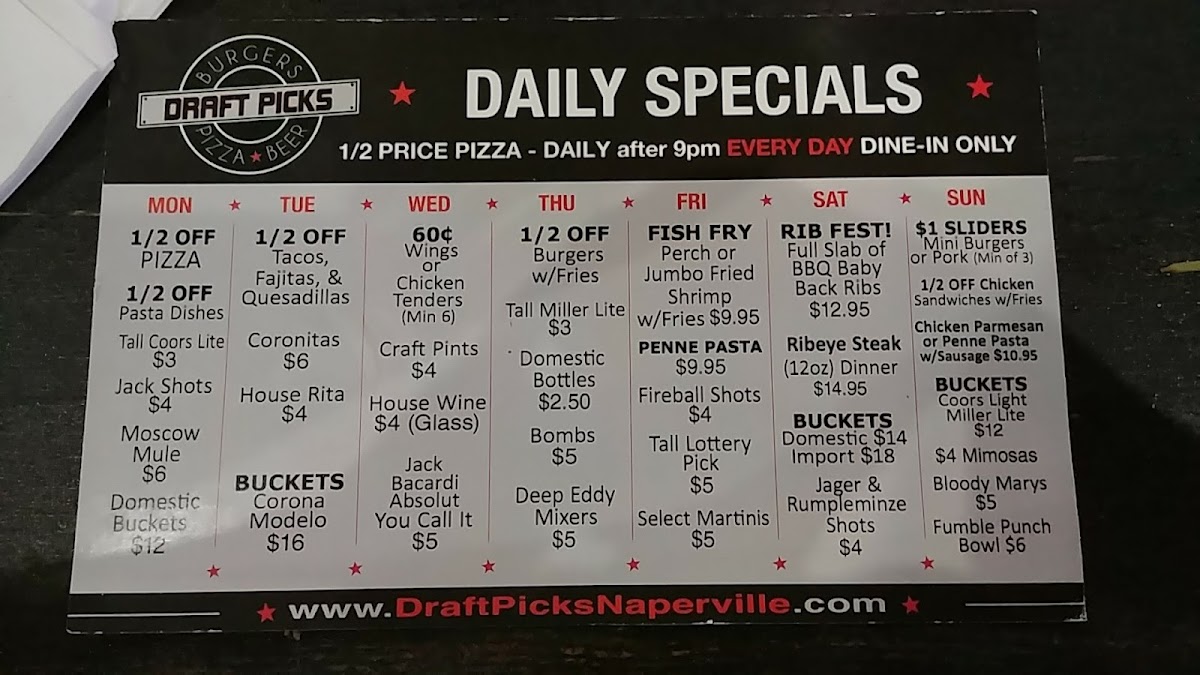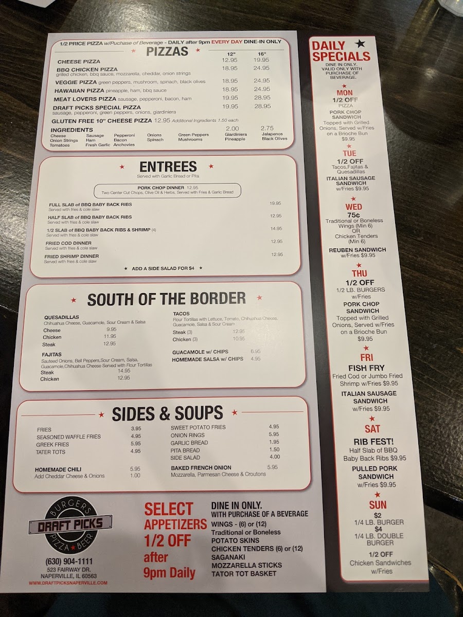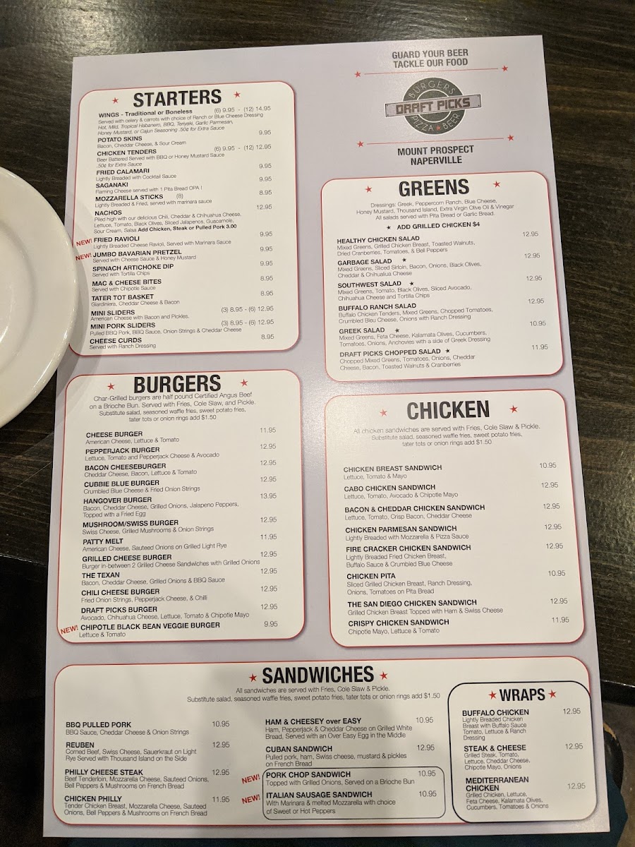 Welcome to Draft Picks, a vibrant eatery located at 523 Fairway Dr in Naperville, IL, where the excitement of sports meets culinary delight. The menu boasts an impressive selection of sandwiches and burgers, making it a prime destination for food enthusiasts.